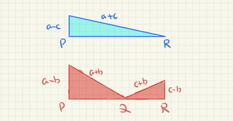 We now consider 3 triangles. Two in red and one in blue.