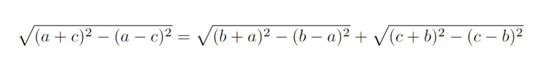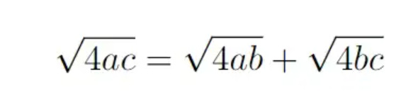 In fact, we divide by sqrt(4abc), giving us the following identity.