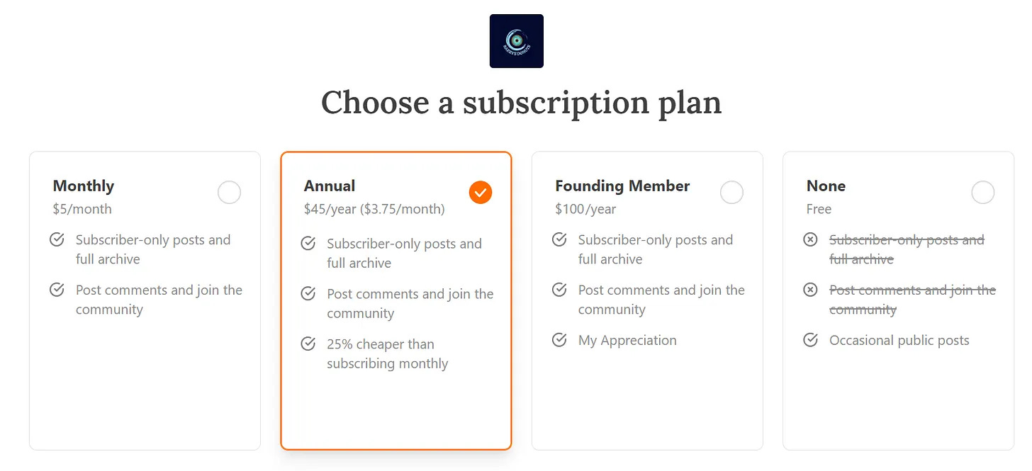 This is a free newsletter, but if you would like to be one of my early supporters, consider becoming a paid member so that I can continue to bring out quality mathematical treats. 🍩
