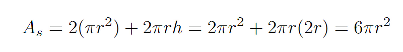 We know that the total surface area of a cylinder is equal to the sum of areas of the two base circles and the curved rectangular side.